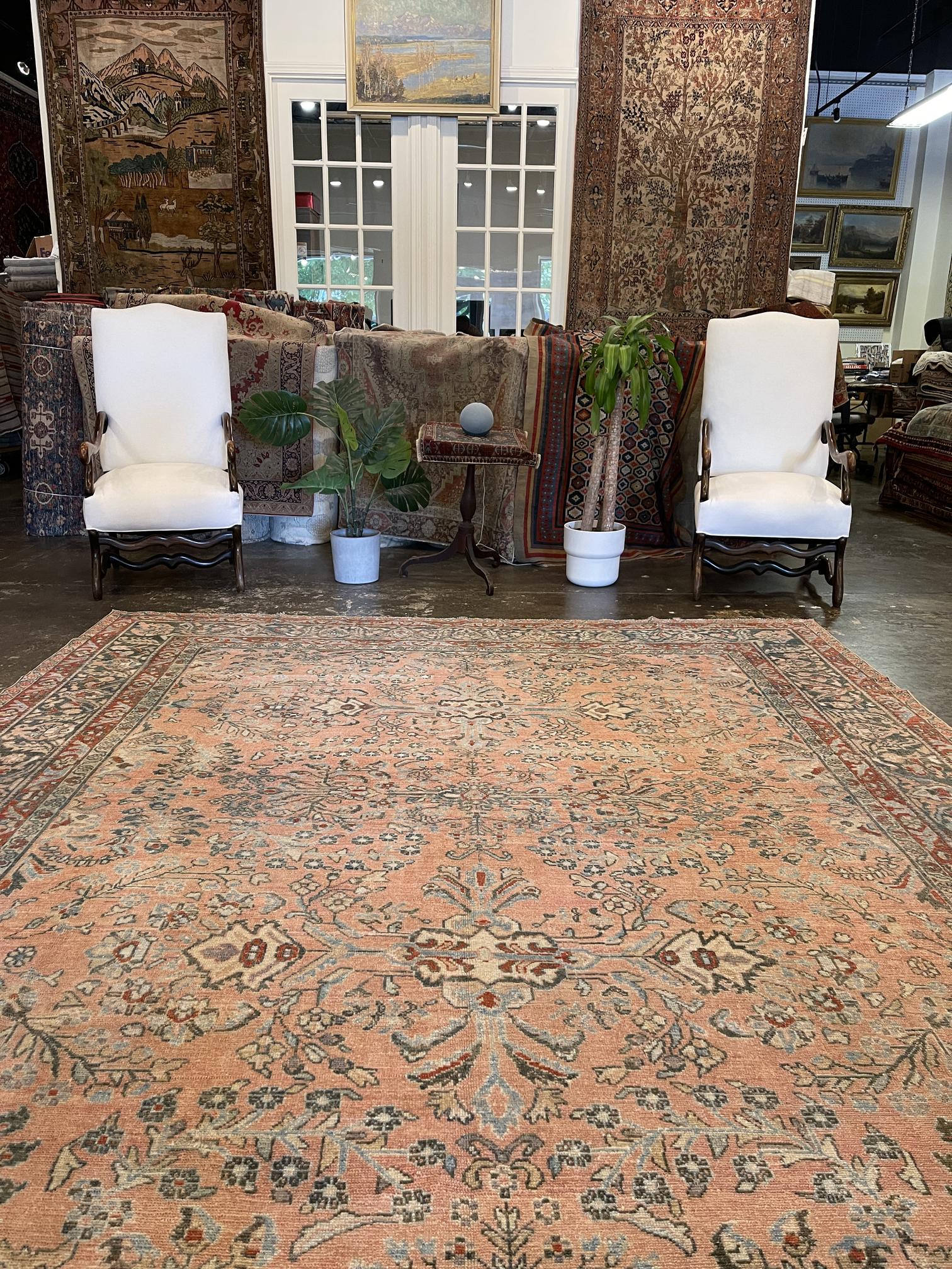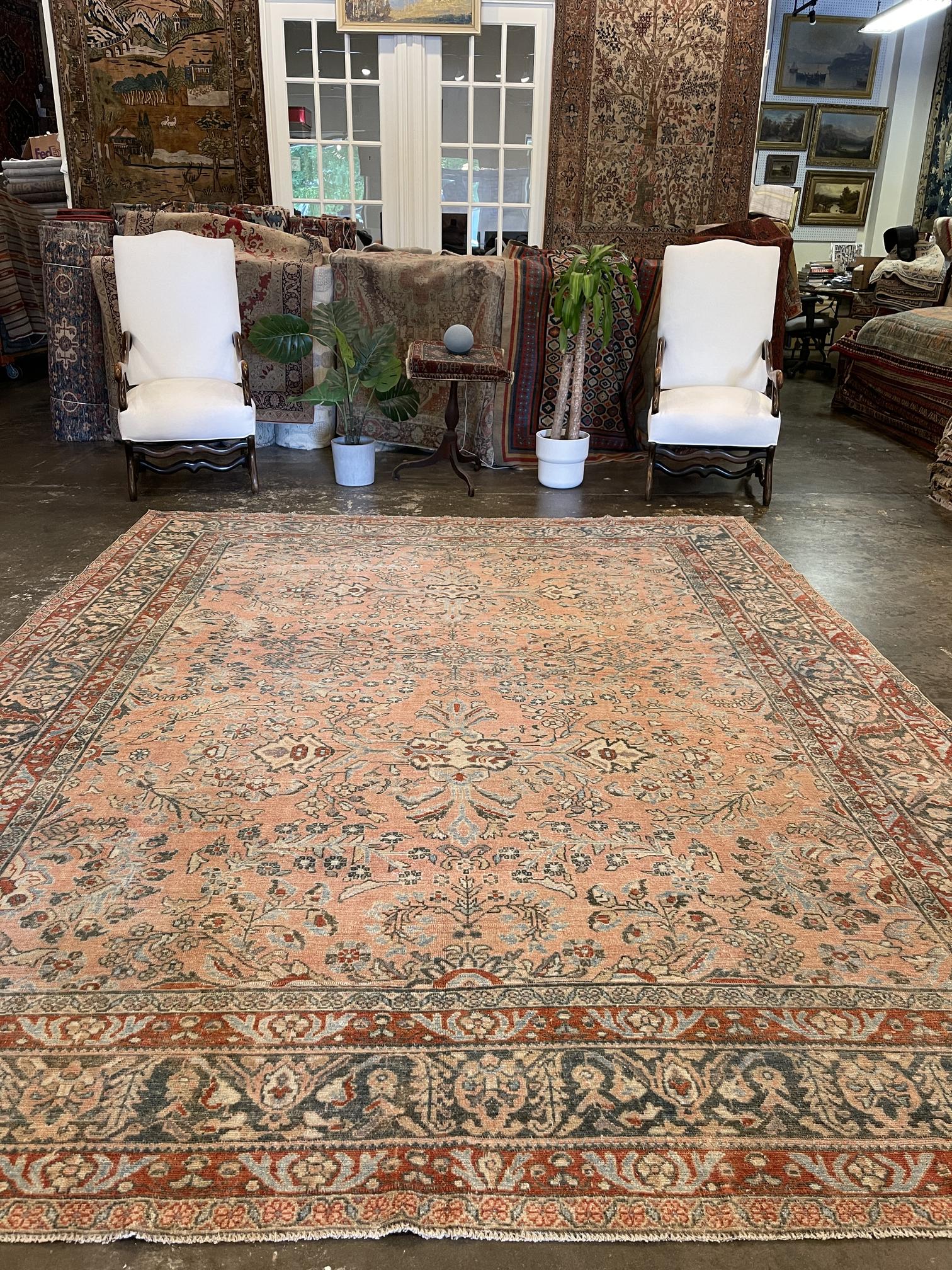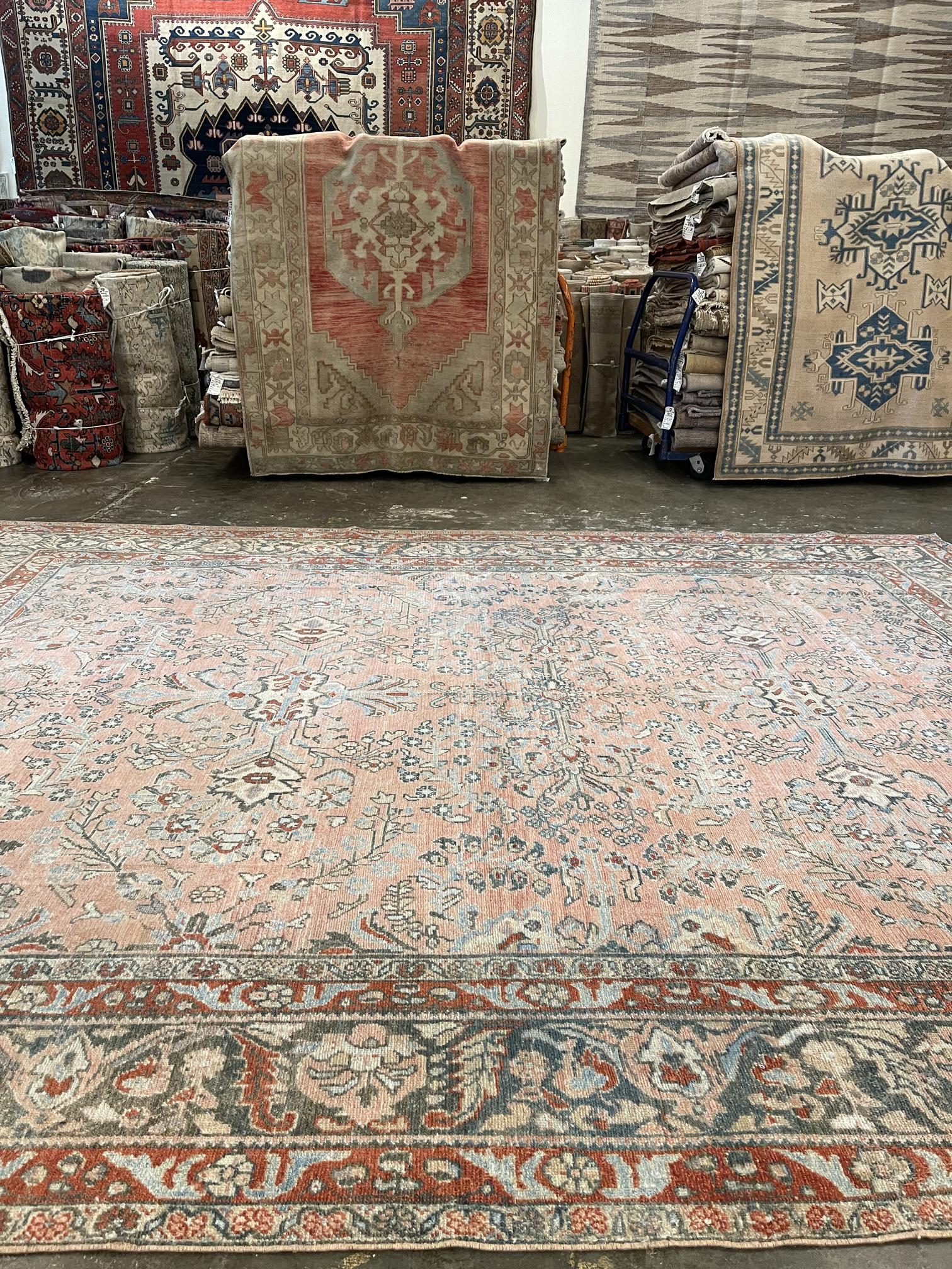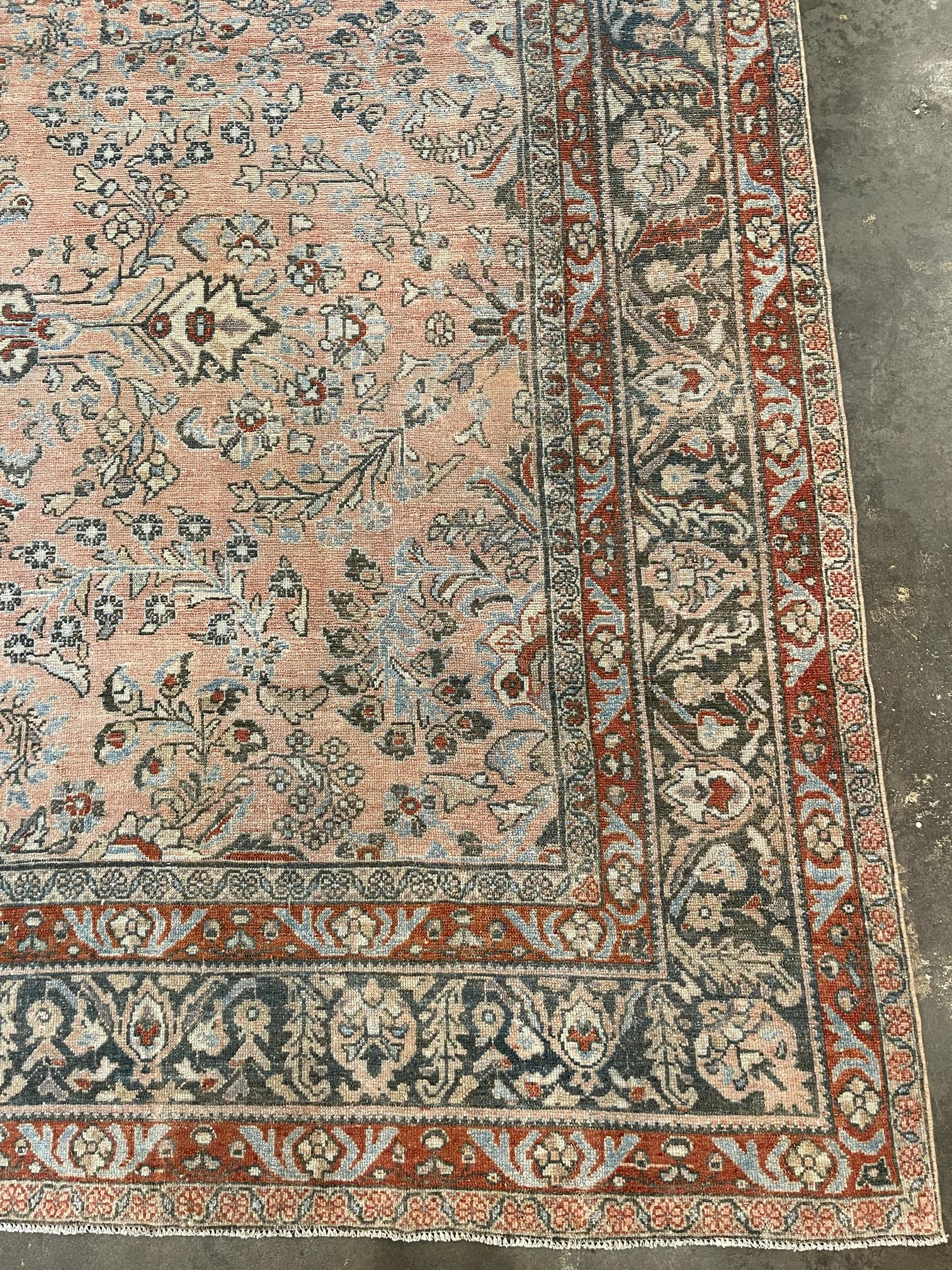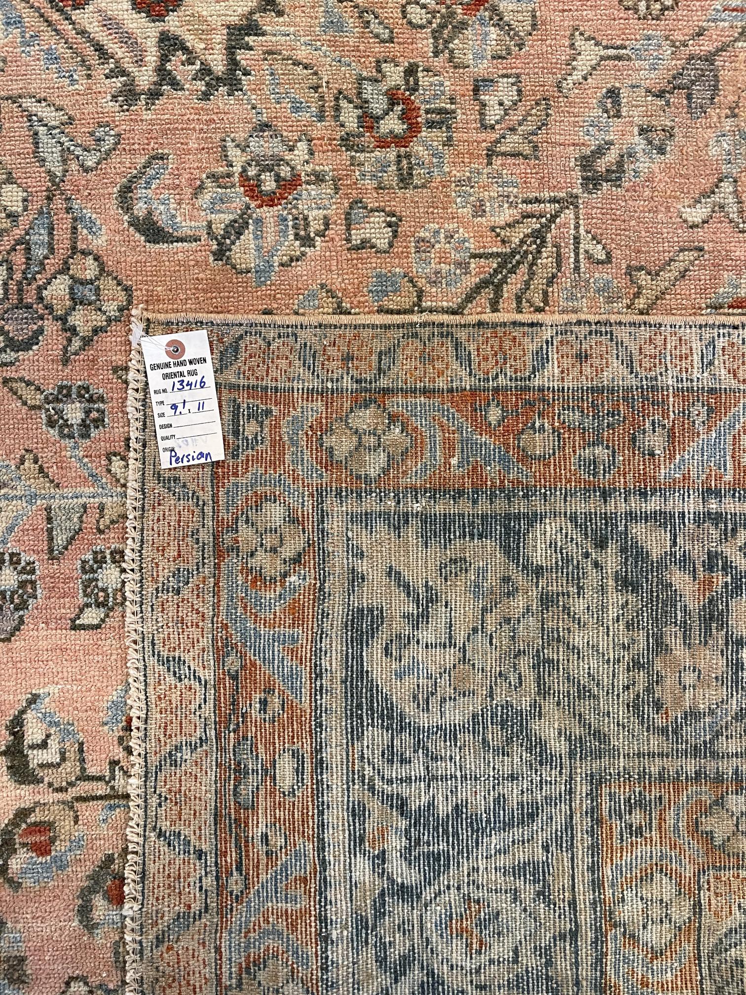 This is a 9'1" x 11' Antique Persian Bebikabad that is a part of our Transitional, Distressed, Boho, Tribal, Vintage, New Arrival collection(s). It has a beautiful colorful, pink, coral palette and is woven with 100% wool by expert artisan weavers who have a lifetime's worth of experience. We recommend using this rug as a Room Sized piece. Let's turn your house into a home by creating experiences that are as timeless as our craft.