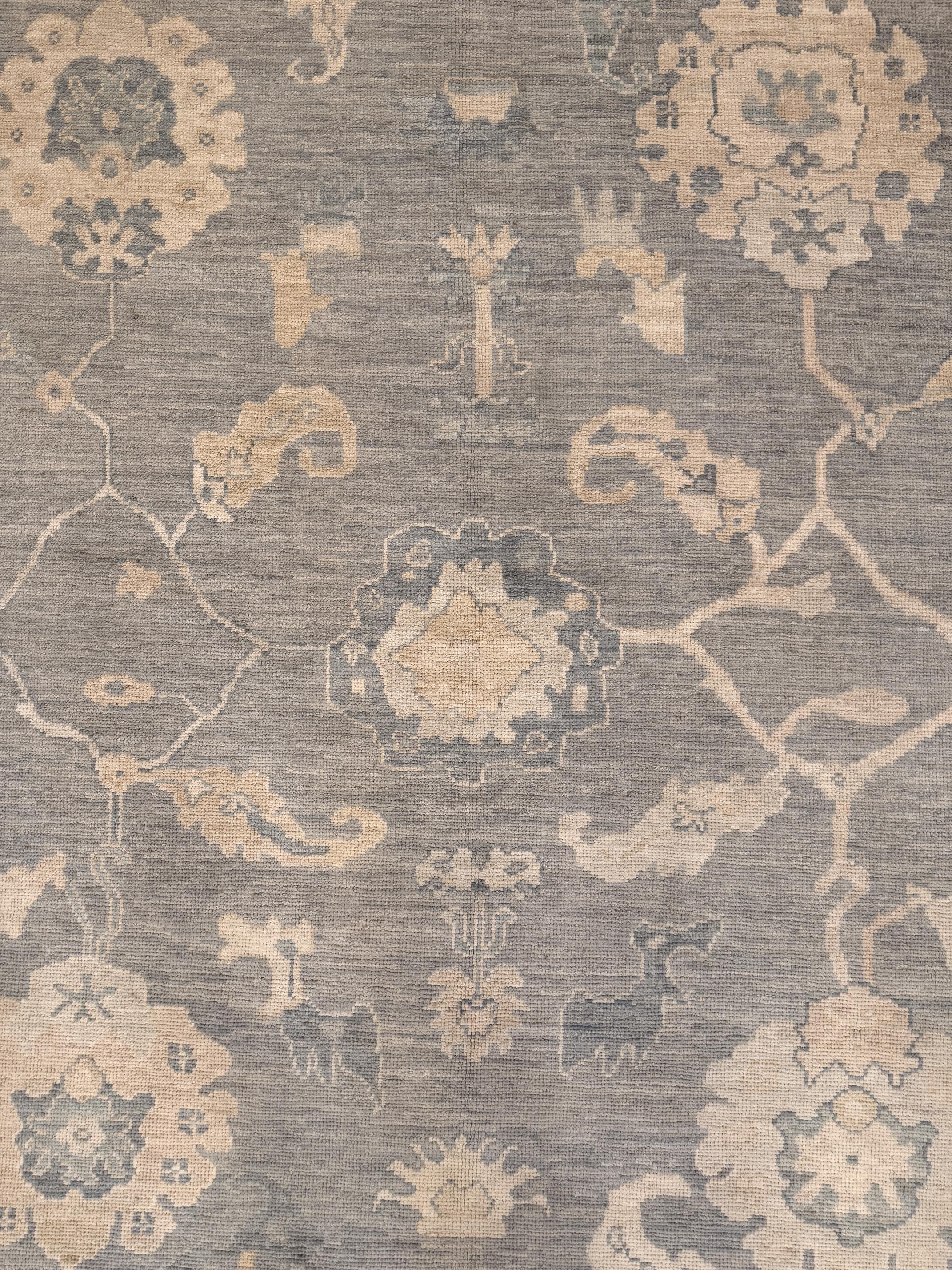 This is a 8'4" x 10'5" New Turkish Oushak that is a part of our New Arrival, Transitional collection(s). It has a beautiful neutral palette and is woven with 100% wool by expert artisan weavers who have a lifetime's worth of experience. We recommend using this rug as a piece. Let's turn your house into a home by creating experiences that are as timeless as our craft.
