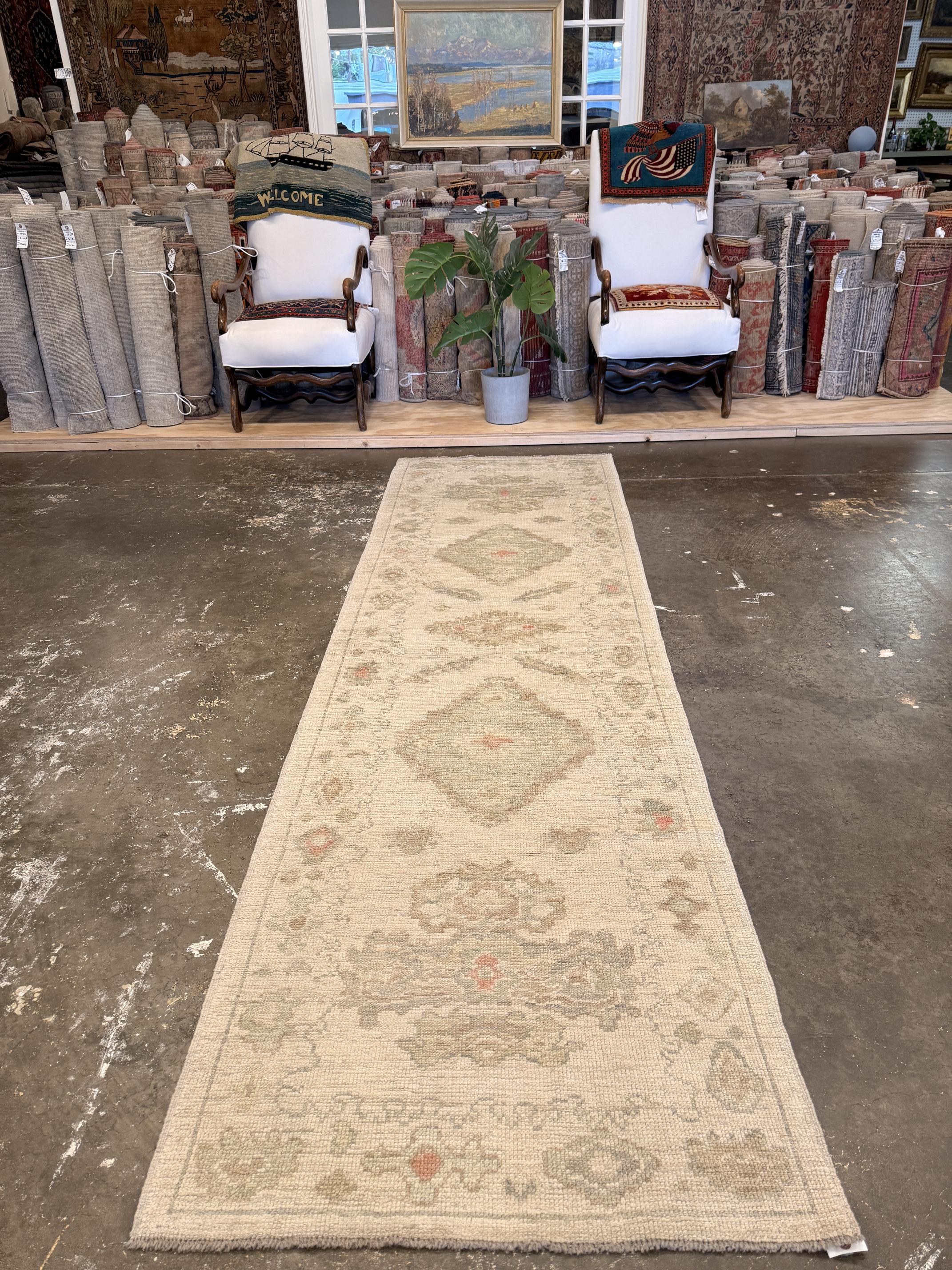 Turkish Oushak Rug - 3'1" x 10'4"