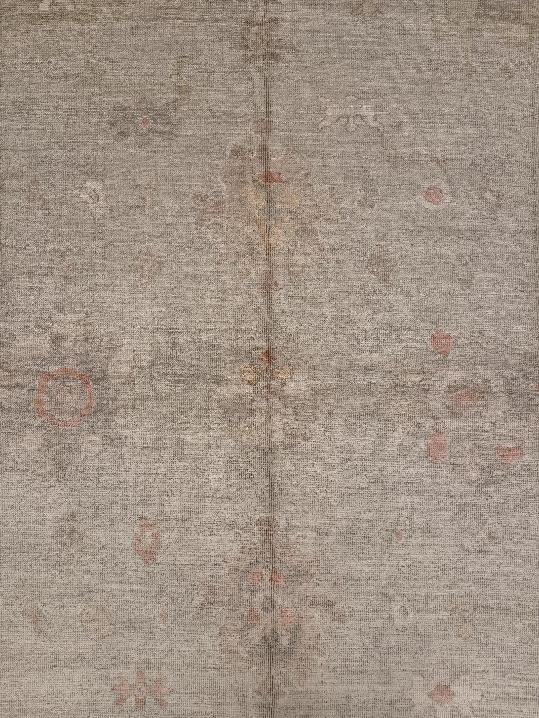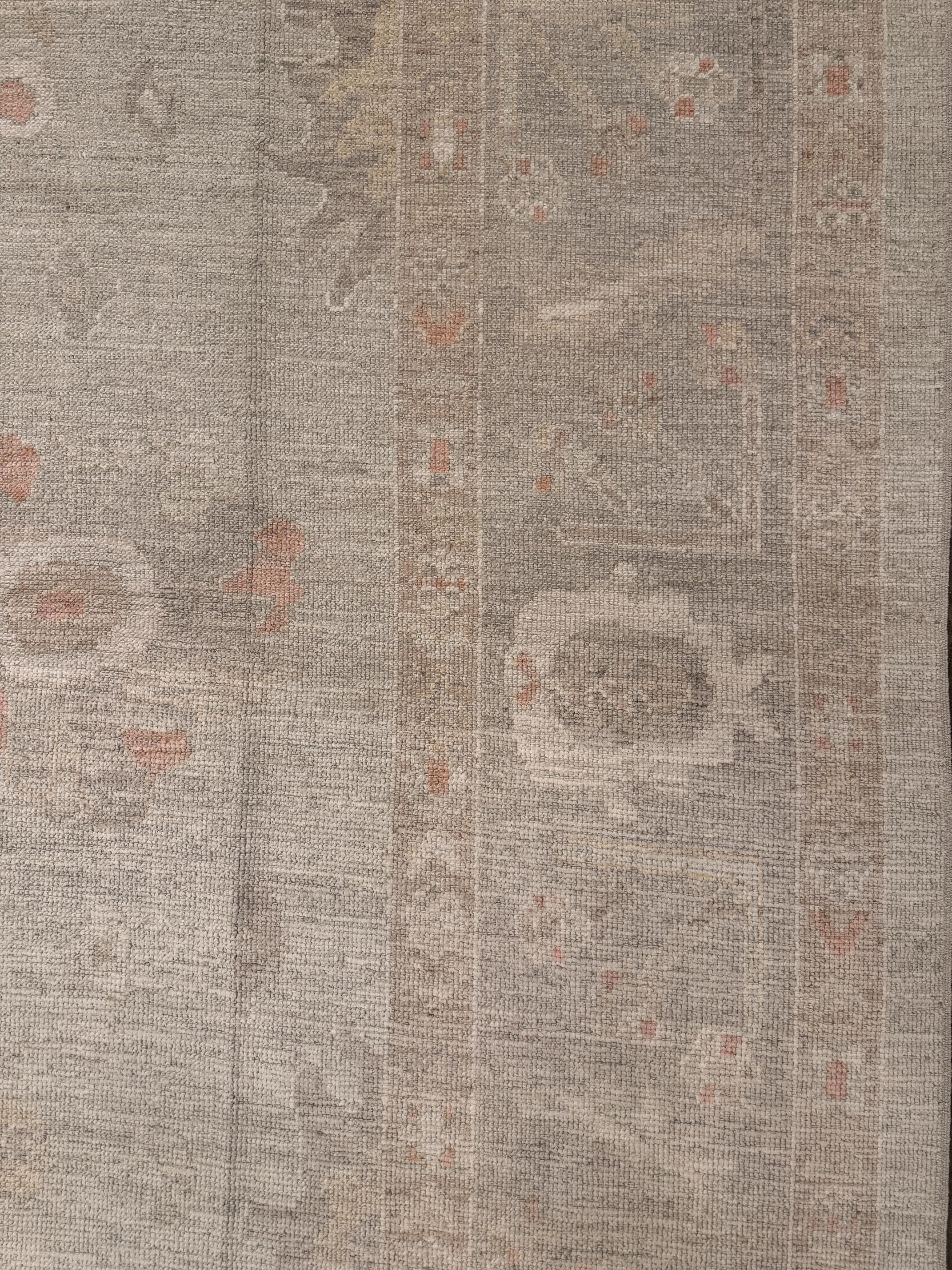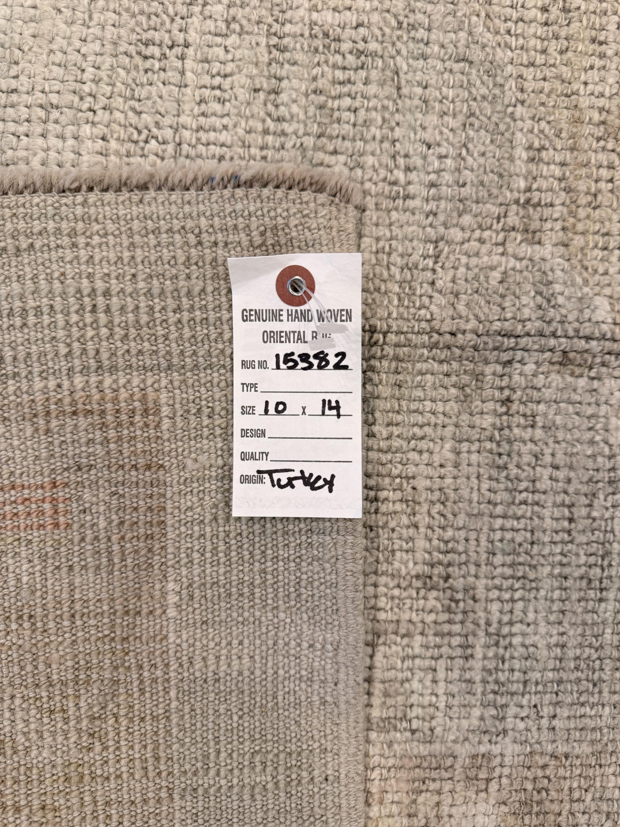 This is a 9'11" x 14' New Turkish Oushak that is a part of our New Arrival, Transitional collection(s). It has a beautiful neutral palette and is woven with 100% wool by expert artisan weavers who have a lifetime's worth of experience. We recommend using this rug as a piece. Let's turn your house into a home by creating experiences that are as timeless as our craft.