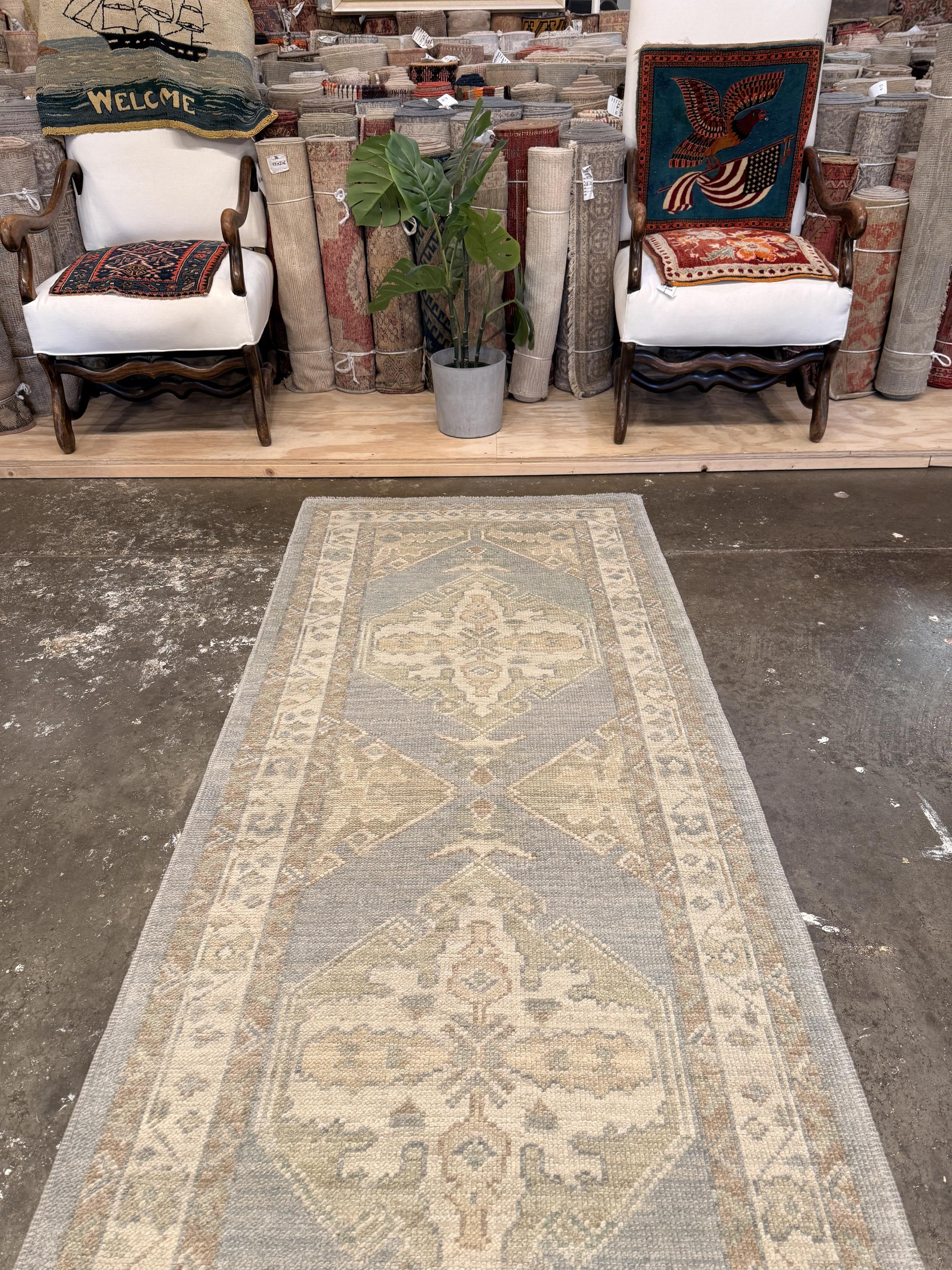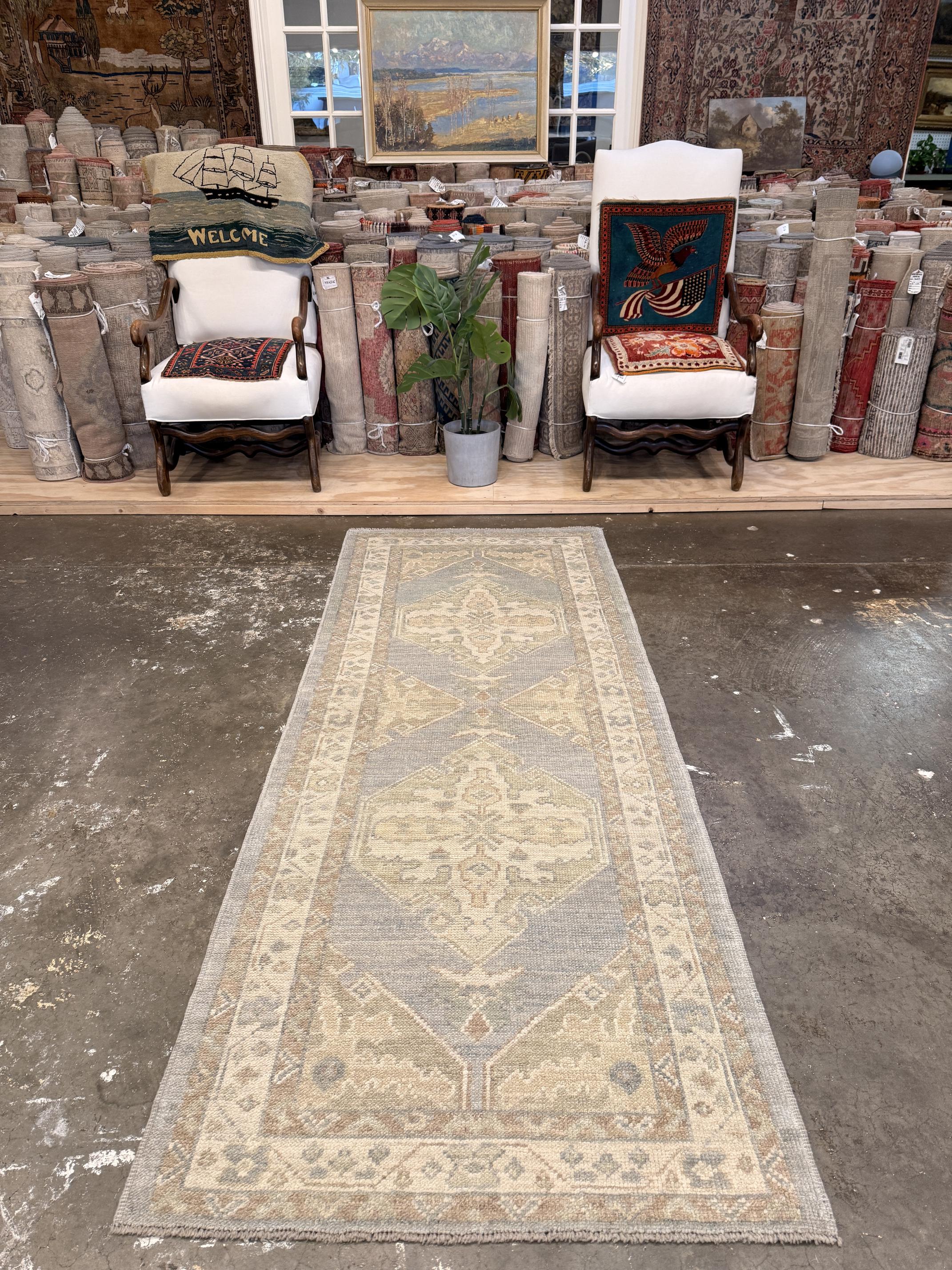 Turkish Oushak Rug - 3'1" x 7'11"