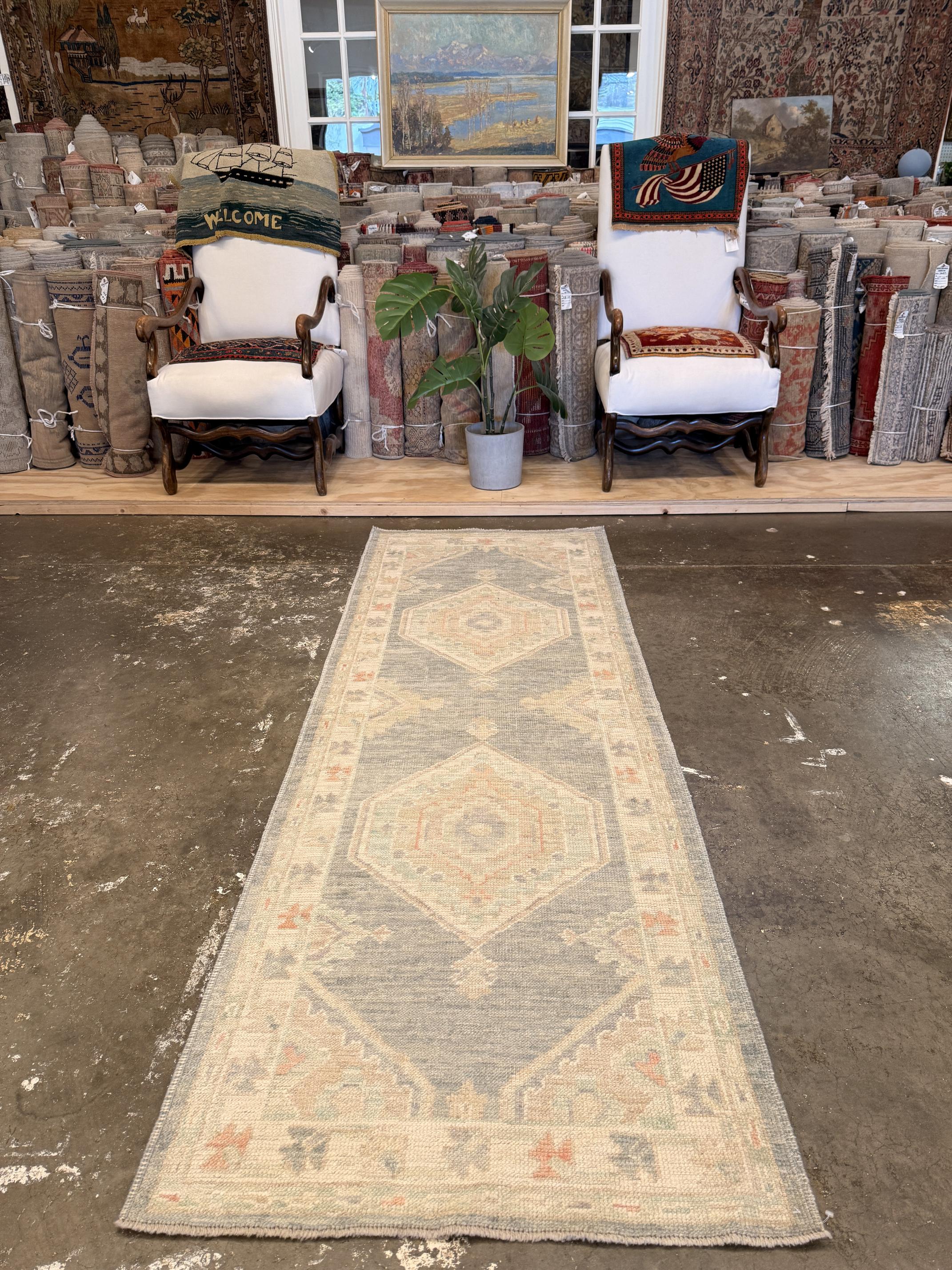Turkish Oushak Rug - 2'8" x 7'9"